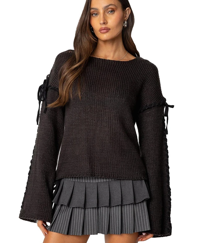 Edikted Womens Amelia Lace Up Sleeve Sweater