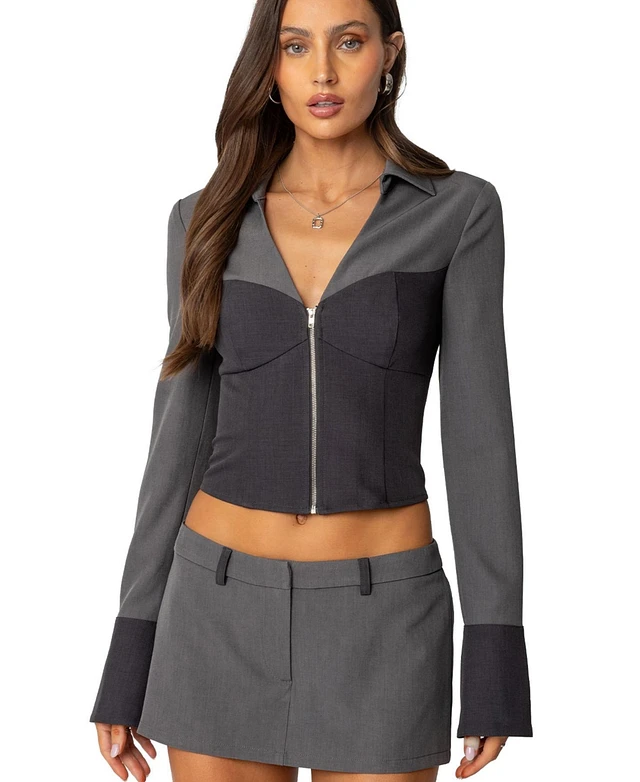 Edikted Womens Angela Tailored Zip Up Top