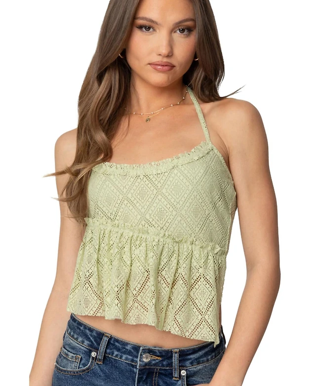 Edikted Women's Naya Textured Sheer Lace Halter Top