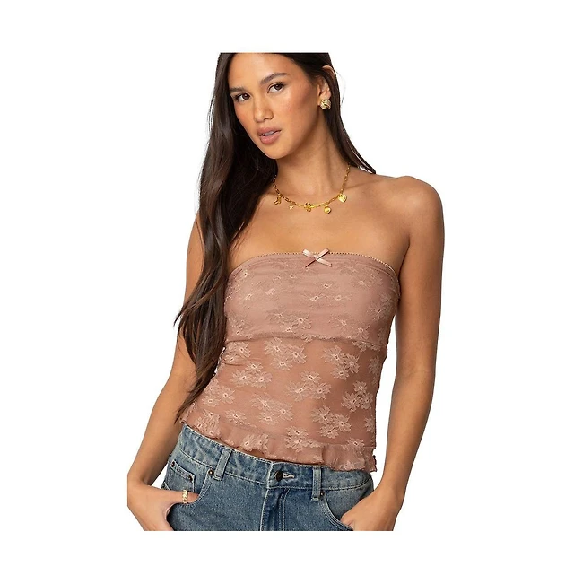 Edikted Womens Allison Lace Tube Top