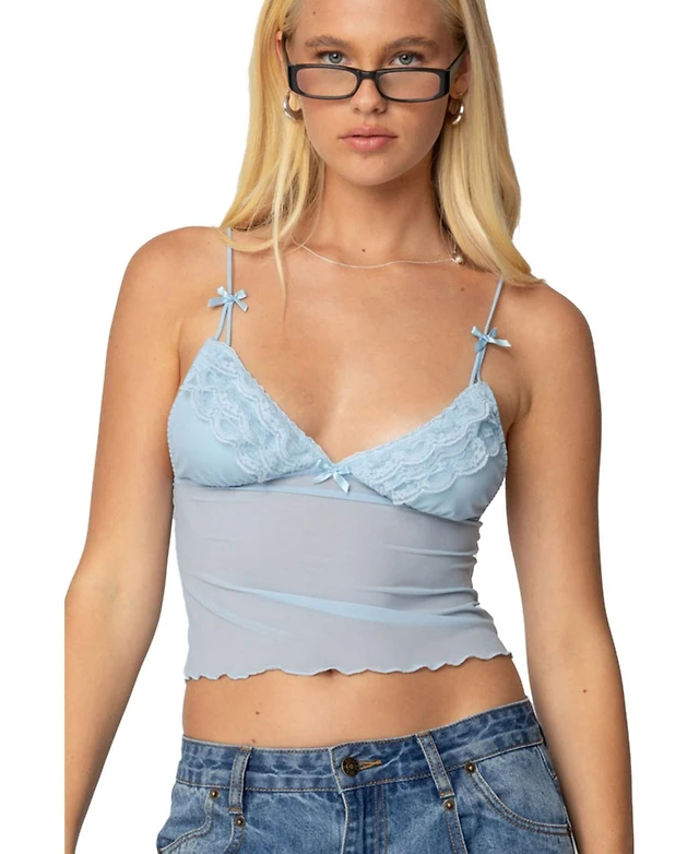 Edikted Womens Berkley Sheer Mesh Lacey Top