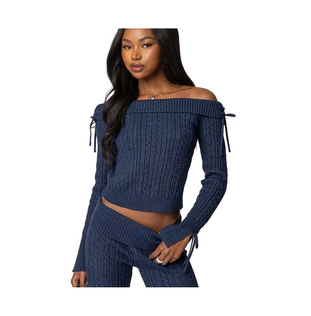 Edikted Womens Tj Off Shoulder Knit Bow Top