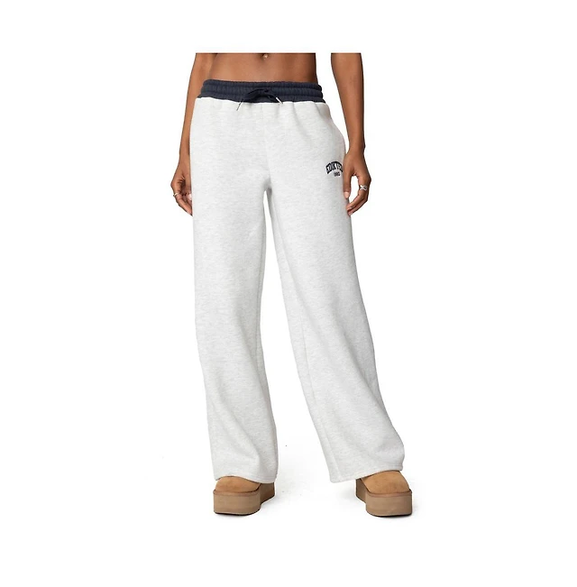 Edikted Womens Wide Leg Contrast Fold Over Pants