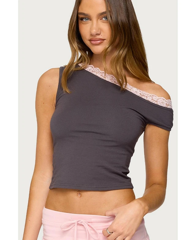 Edikted Womens Lacey Asymmetric Square Neck Top