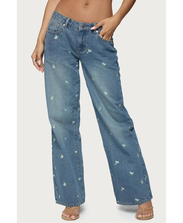 Edikted Women's Edna Floral Embroidered Low Rise Jeans