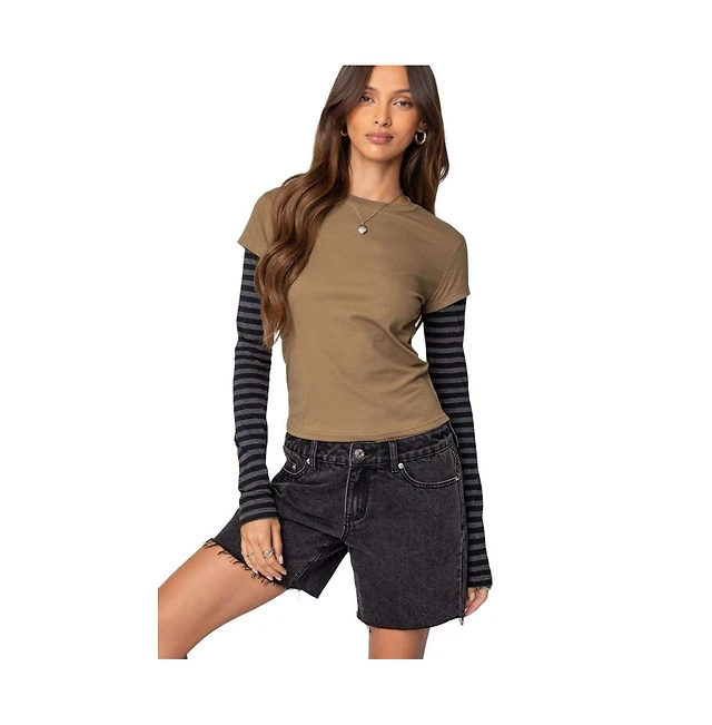 Edikted Womens Eliana Layered Long Sleeve T Shirt