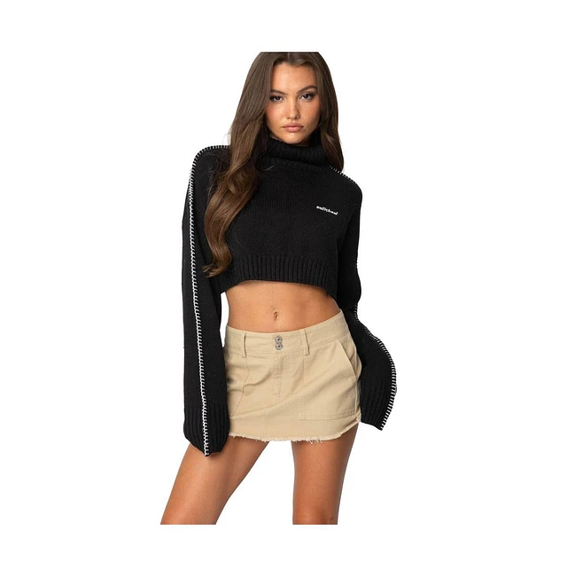 Edikted Women's Embroidered Edge Cropped Turtle Neck Sweater