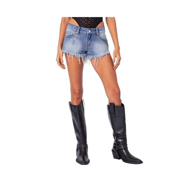 Edikted Women's Erika Low Rise Frayed Denim Shorts