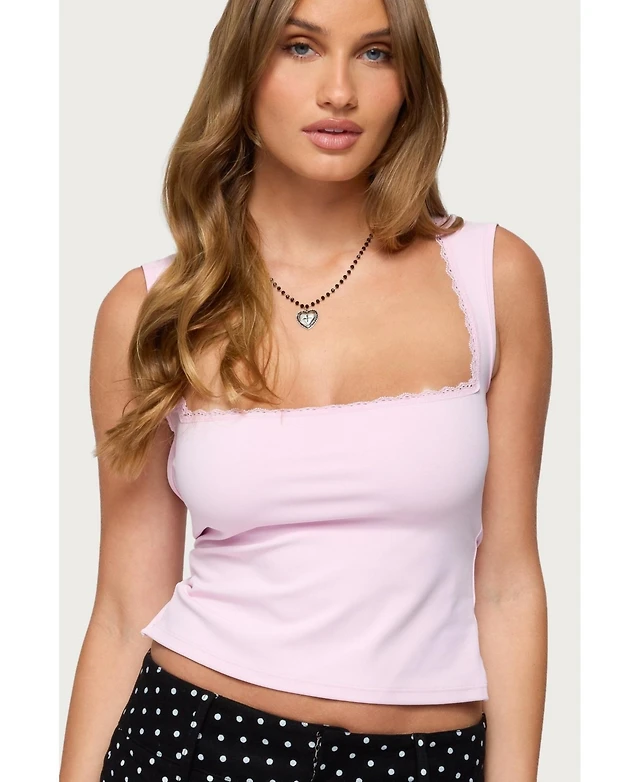 Edikted Womens Lacey Asymmetric Square Neck Top