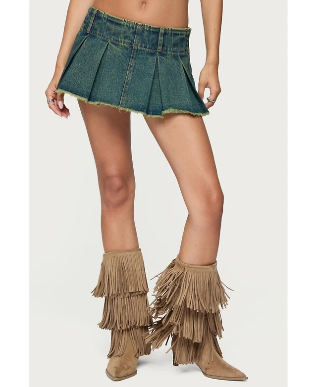 Edikted Women's Frayed Pleated Denim Mini Skort