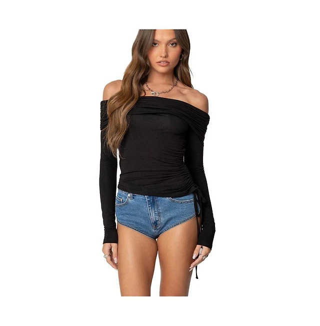 Edikted Women's Fold Over Ruched One Shoulder Top