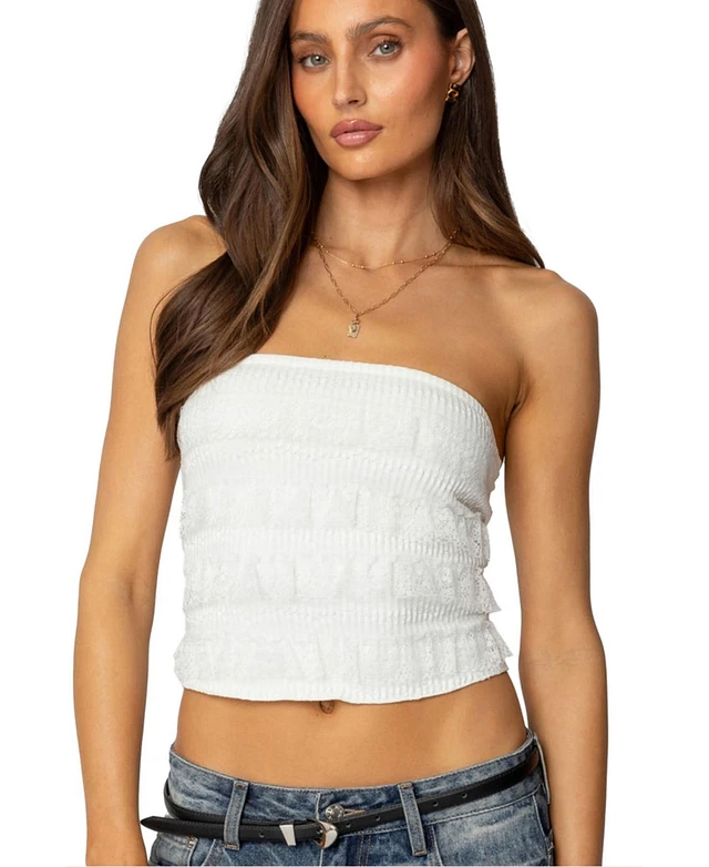 Edikted Women's Georgette Lacey Ruffle Tube Top