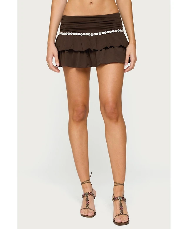 Edikted Women's Double Belt Ruffled Chiffon Mini Skort