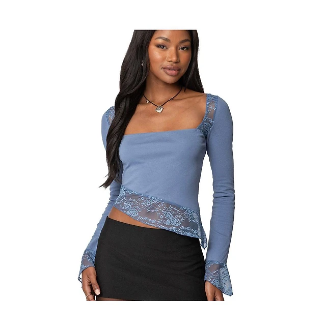Edikted Womens Lacey Asymmetric Square Neck Top