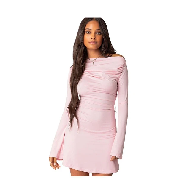 Edikted Women's Shae Pleated Drop Waist Mini Dress