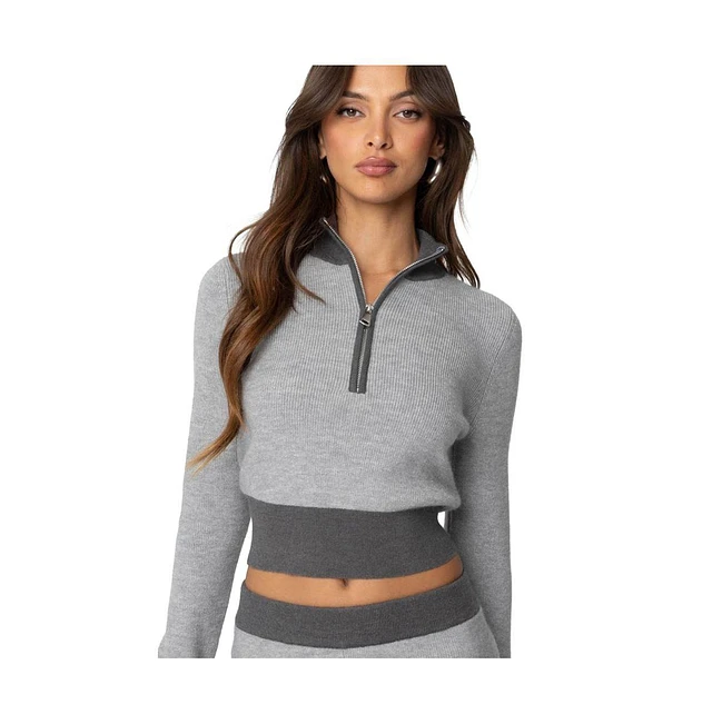Edikted Womens Lei Contrast Half Zip Knit Top
