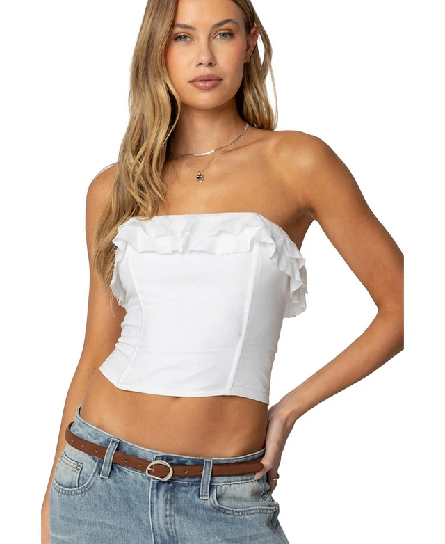 Edikted Women's Harleigh Ruffled Linen Look Tube Top