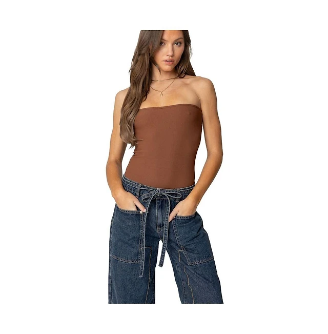 Edikted Womens Loren Strapless Ribbed Bodysuit