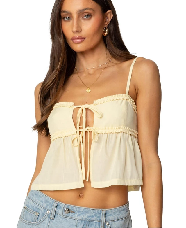 Edikted Womens Ruelle Contrast Frill Tank Top