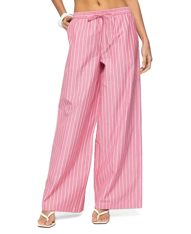 Edikted Women's Lounge Around Plaid Wide Leg Pants
