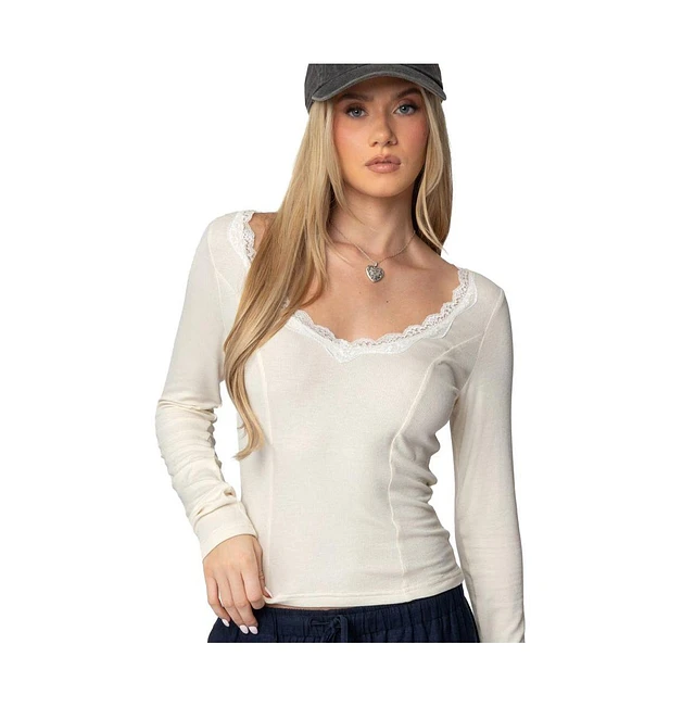 Edikted Womens Shayni Lace Trim Long Sleeve Top
