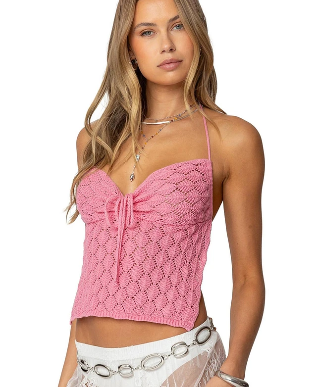 Edikted Women's Quince Backless Embroidered Crochet Top