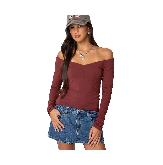 Edikted Womens Neriah Grommet Off Shoulder Top