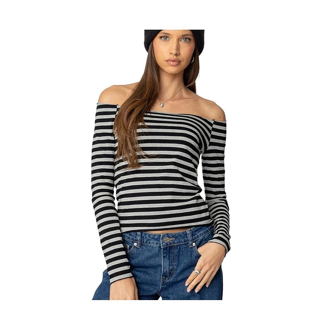 Edikted Womens Nelligan Striped Off Shoulder Top