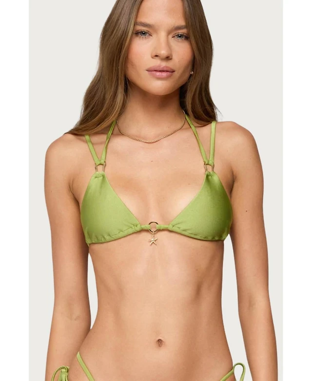 Edikted Women's Golden Ruffle Edge Triangle Bikini Top