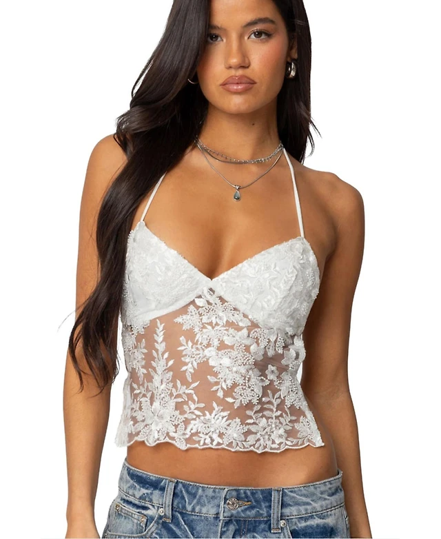 Edikted Women's Naya Textured Sheer Lace Halter Top