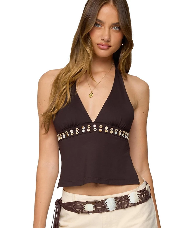 Edikted Women's Evey Bead & Cut Out Halter Top