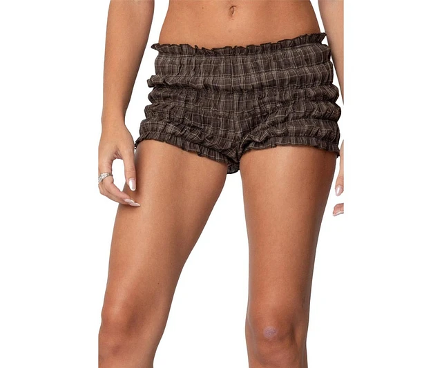 Edikted Women's Plaid Scrunch Shorts