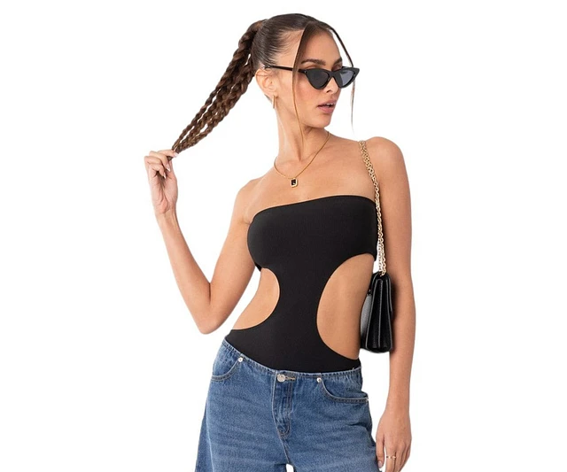 Edikted Women's Ribbed Bodysuit With Cut Out Top