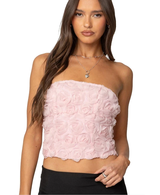 Edikted Womens Wild Blossom Lace Up Mesh Corset