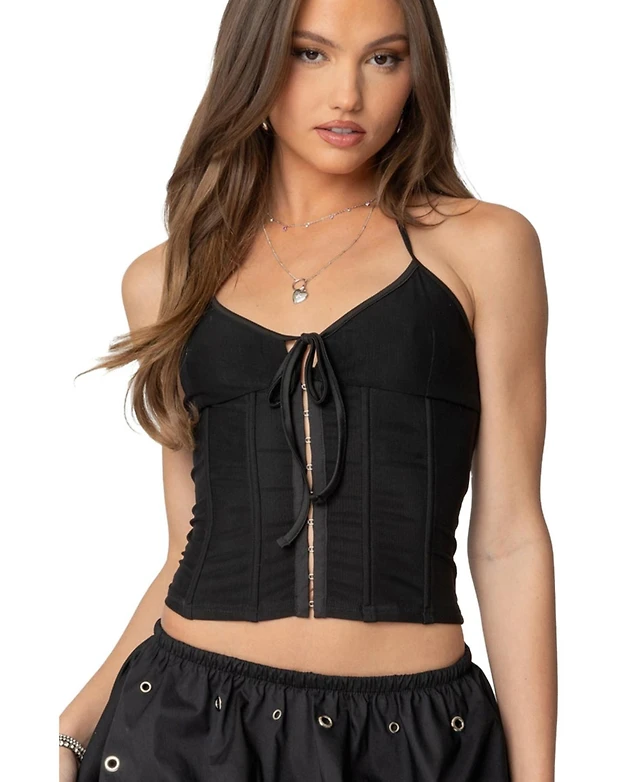Edikted Womens Ryanne Tie Front Halter Corset