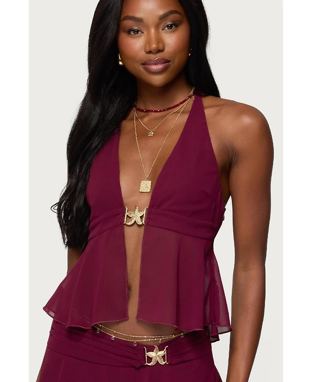 Edikted Women's Amit Tiered Chiffon Halter Top