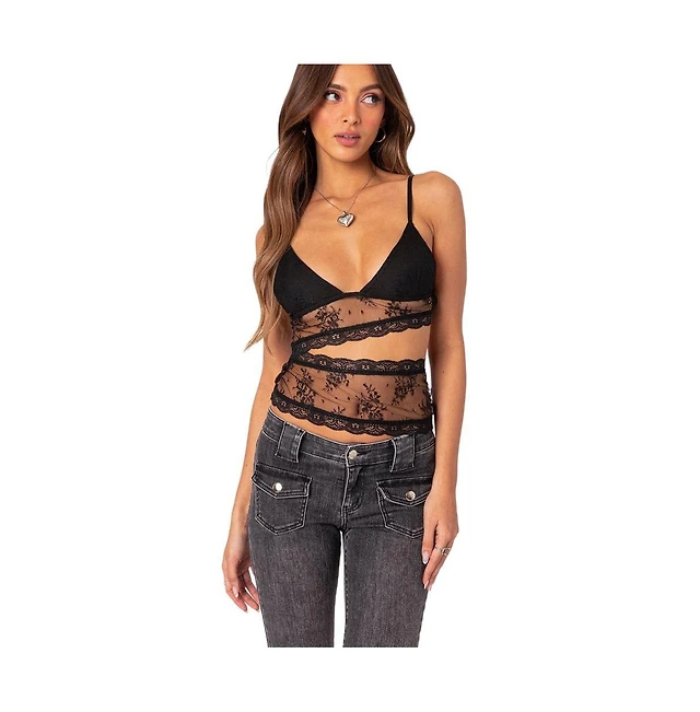 Edikted Women's Strappy Sheer Mesh Cupped Top