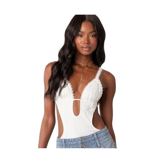 Edikted Women's Lacey Knit Cut Out Bodysuit