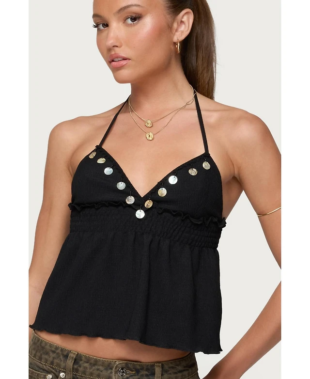 Edikted Womens Textured Iridescent Babydoll Halter Top