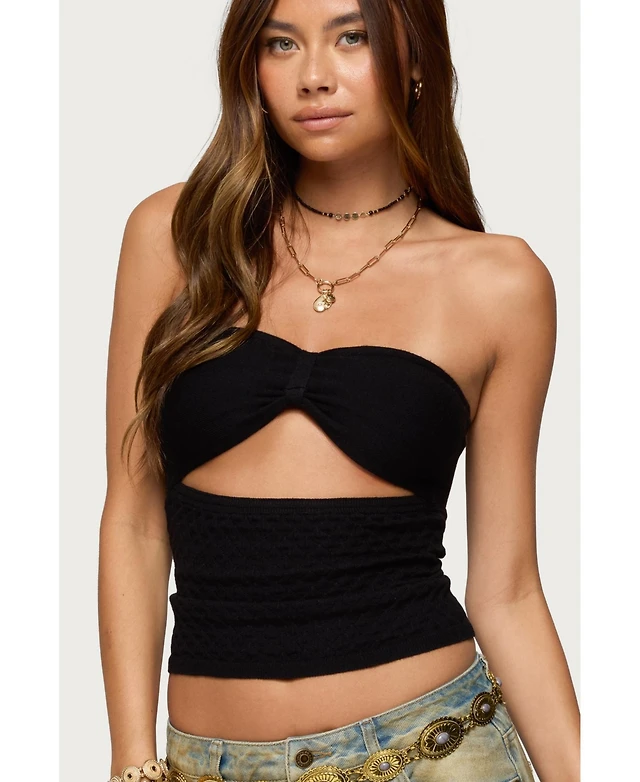 Edikted Women's Textured Knit Strapless Cutout Top