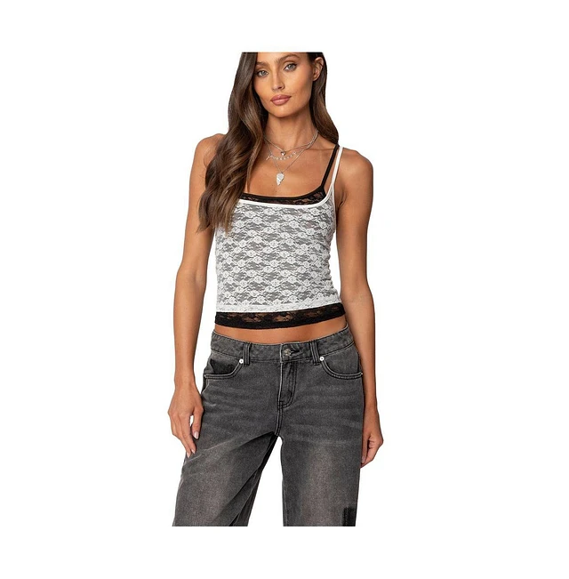 Edikted Womens Wynnie Layered Lace Tank Top