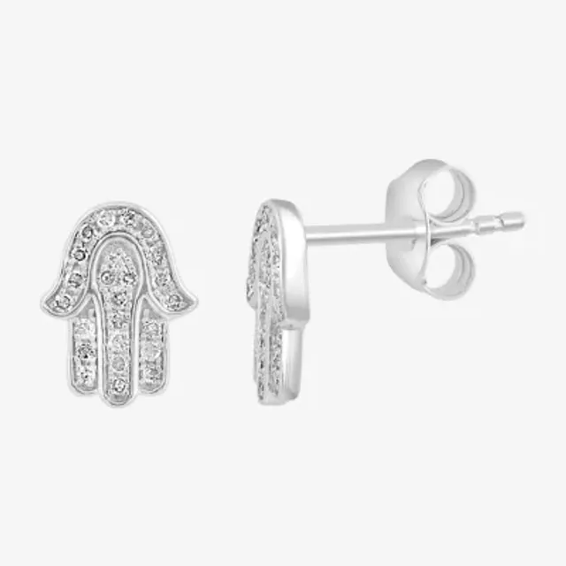 Effy 1/7 CT. T.W. Natural White Diamond Sterling Silver 9.1mm Hamsa Stud Earrings