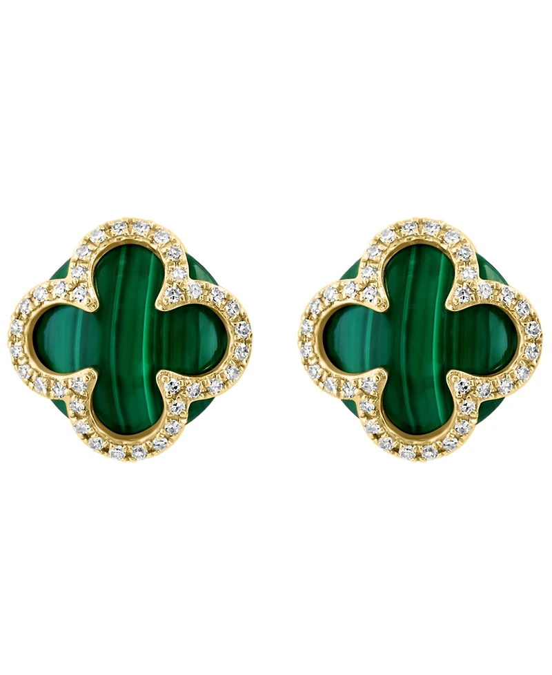 Effy Collection Diamond (1/5 ct. t.w.) and Malachite Earrings in 14k Yellow Gold
