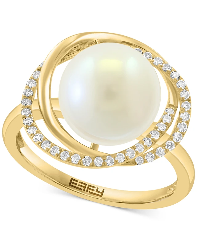 Effy Cultured Freshwater Pearl (10mm) & Diamond (1/6 ct. t.w.) Knot Swirl Ring in 14k Gold