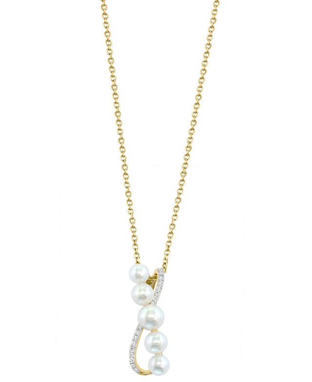 Effy Cultured Freshwater Pearl (2-1/2 - 5mm) & Diamond (1/10 ct. t.w.) Lariat Necklace in 14k Gold, 14-3/4" + 1-1/4" extender