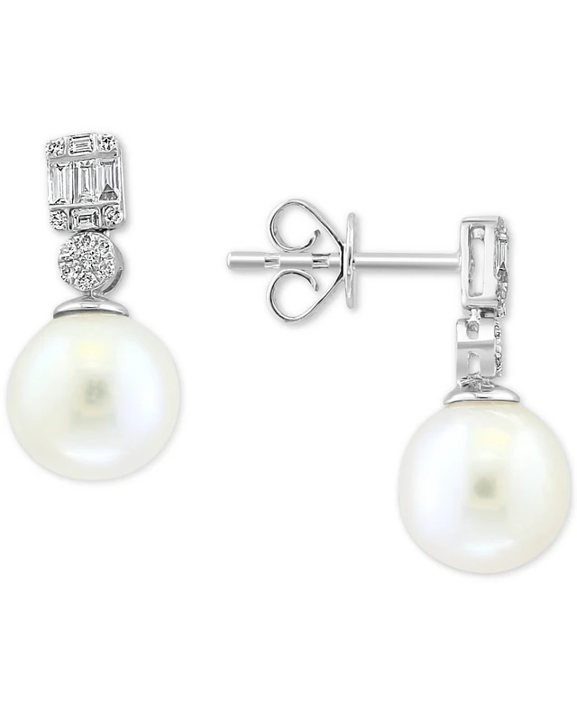 Effy Cultured Freshwater Pearl (9mm) & Diamond (1/5 ct. t.w.) Drop Earrings in 14k White Gold