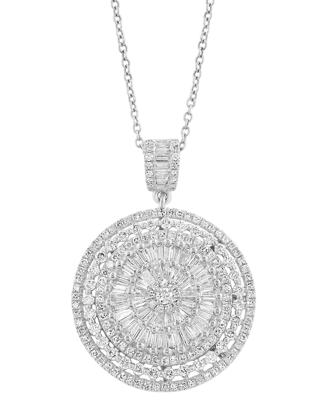 Effy Diamond Round & Baguette Circle Cluster 18" Pendant Necklace (1 ct. t.w.) in 14k White Gold