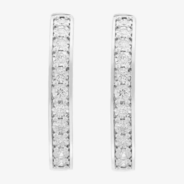 Effy Final Call (G / Si1) Womens 1 CT. T.W. Lab Grown White Diamond Sterling Silver 1.3mm Hoop Earrings