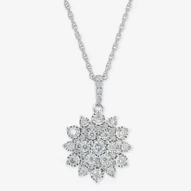 Effy Final Call Womens 1/2 CT. T.W. Natural White Diamond Sterling Silver Flower 16 Inch Pendant Necklace