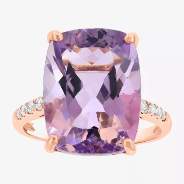 Effy Final Call Womens 1/5 CT. T.W. Diamond & Genuine Purple Amethyst 14K Rose Gold Cocktail Ring